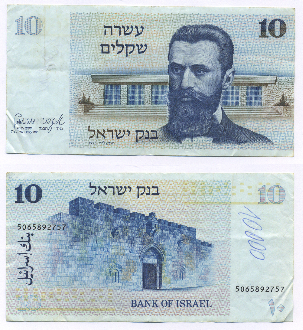 Израиль 10 шекелей 1980 Теодор Герцль, сионские ворота, Иерусалим Pick 45 бумага 000-00-00