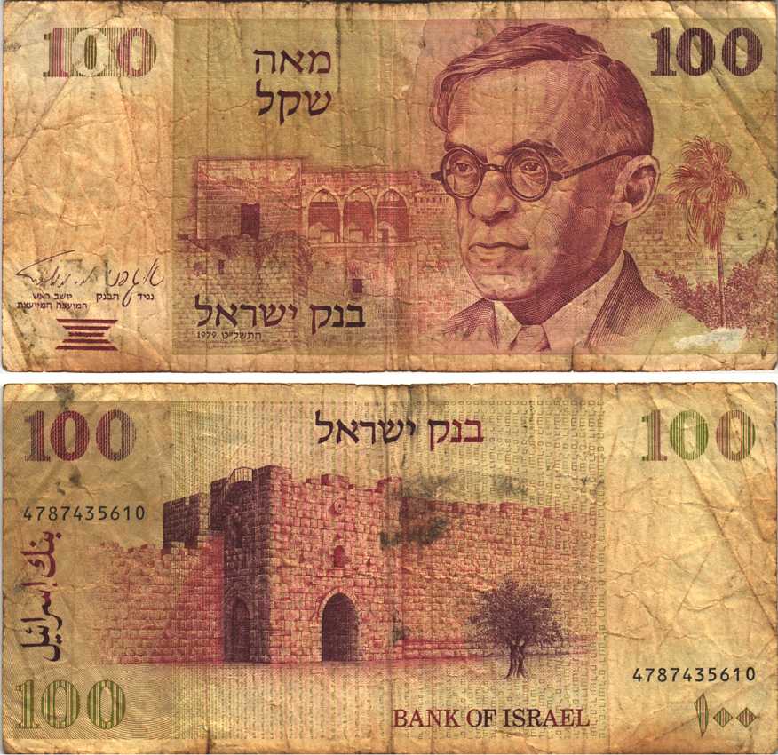 ИЗРАИЛЬ 100 ШЕКЕЛЕЙ 1979 ЗЕЭФ ЖАБОТИНСКИЙ Pick 47а бумага 7191-14-2-2