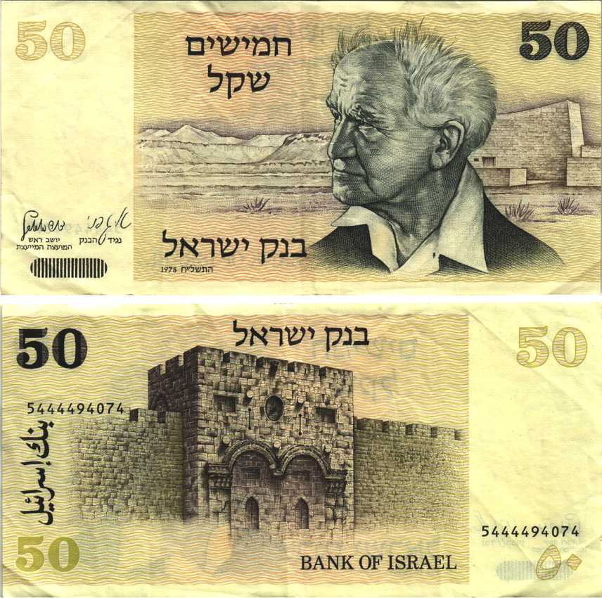 Израиль 50 шекелей 1978 Давид Бен-Гурион, золотые ворота, Иерусалим Pick 46 a бумага 7191-14-2-1