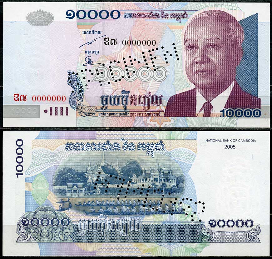 Камбоджа 10000 риэлей 2005 Король Нородом Сианук, королевский дворец, образец, specimen Pick 56 b s бумага UNC (пресс) 451-668-1