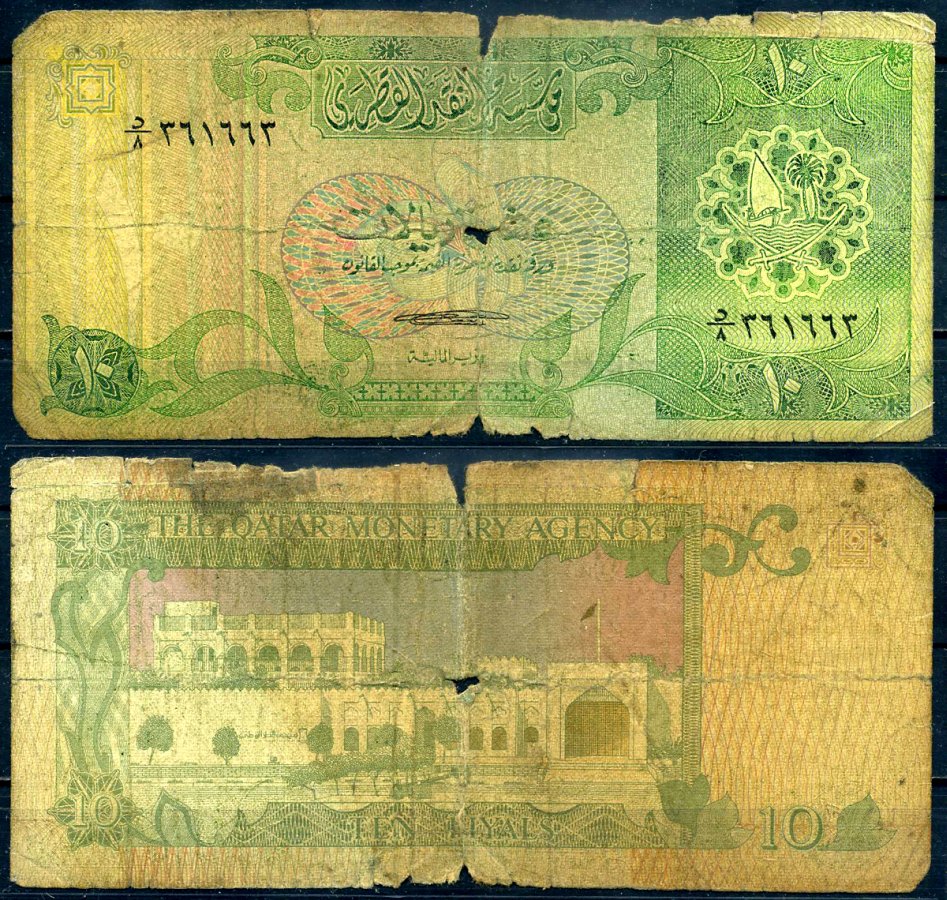 -----Катар 10 риалов ND (1980 s) национальный музей Pick 9 7146-2-2-2