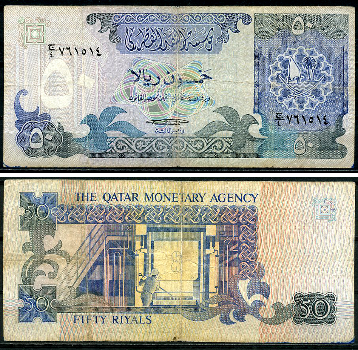 Катар 50 риалов ND (1980 s) сталелитейный завод Pick 10 a бумага 451-1191-3