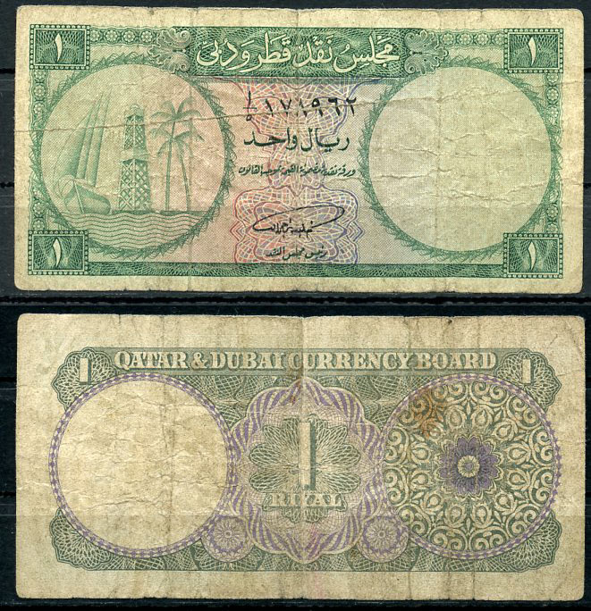 -----Катар и Дубай 1 риал 1960 Pick 1а бумага 451-703-1
