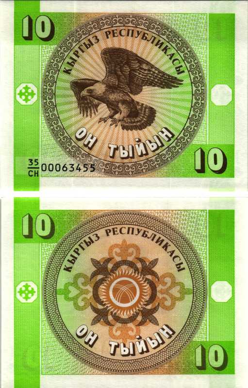 КИРГИЗИЯ 10 ТЫИН 1993 Pick 2, Сергеев 2 бумага UNC (ПРЕСС) 7205-49-1-2