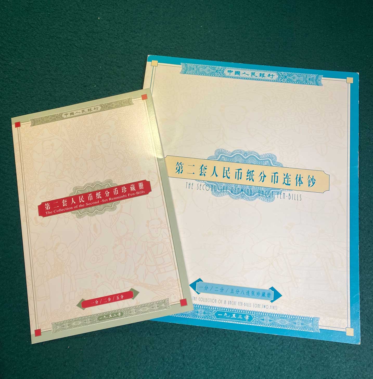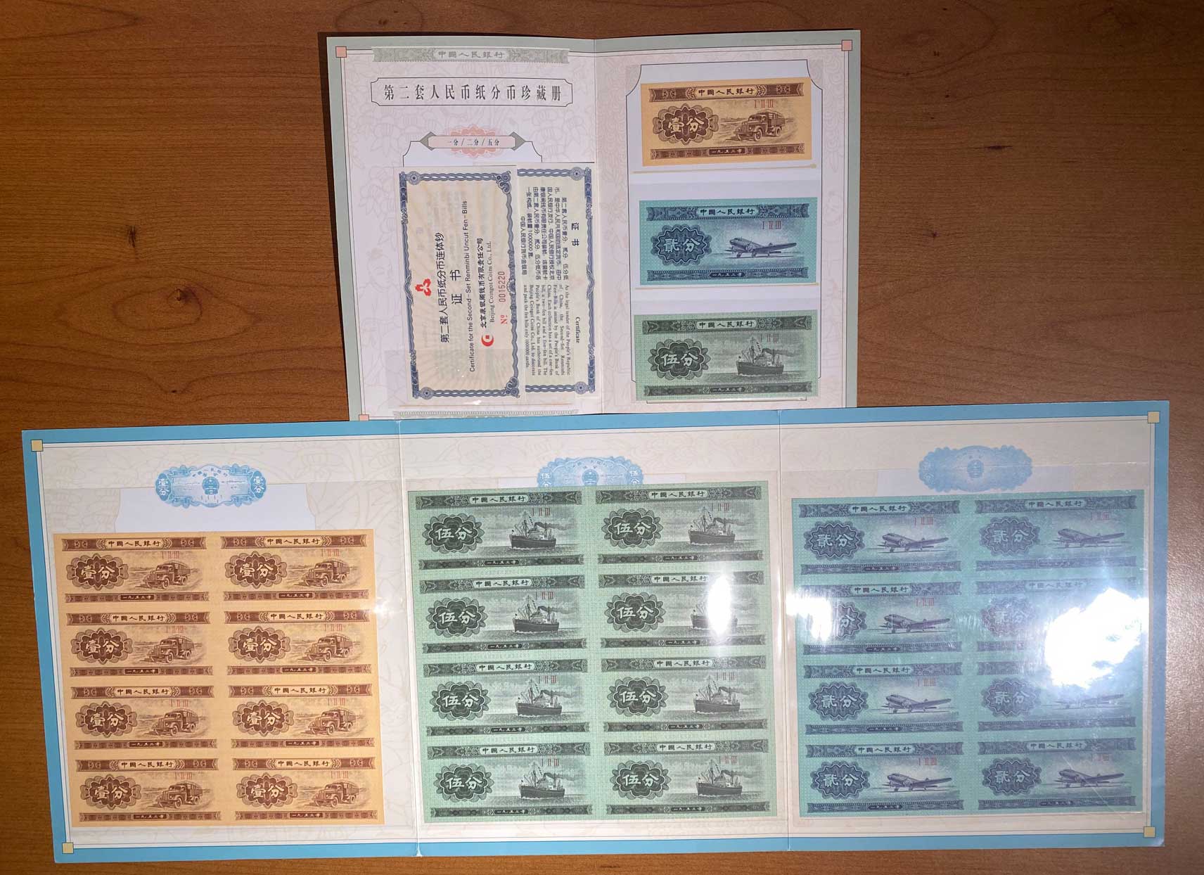 Китай подарочный набор из 24 банкнот 1953 1 фен, 2 фен, 3 фен, не разрезанные типографские листы, сертификат, оригинальный буклет Pick 860b, 861b, 862b бумага UNC (пресс) 5547-8-2-1