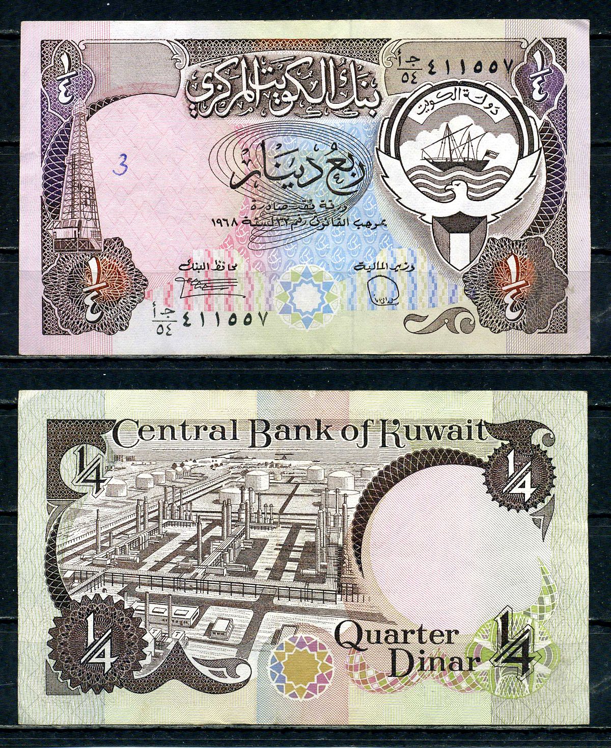 Кувейт 1/4 динара L. 1968 (1980-1991) Pick 11 d (1) бумага 6266-1-4-1