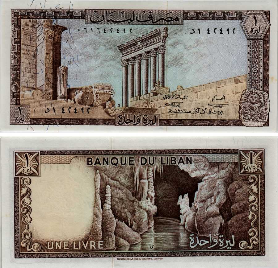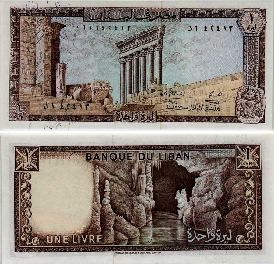Ливан 1 ливр 1971 колонны храма Баальбека, карстовые пещеры Джейта Pick 61 b бумага UNC (пресс) 451-306-3