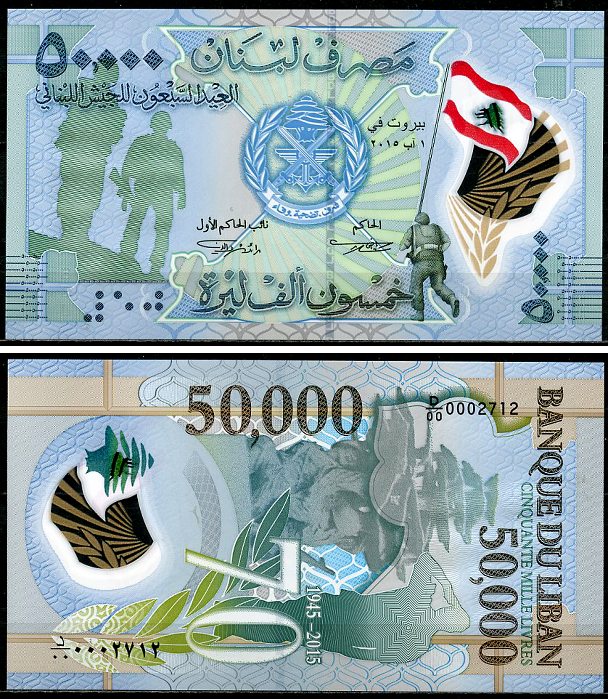 -Ливан 50000 ливров 2015 70 лет армии Ливана Pick 98 пластик UNC (пресс) 451-1072-2Мальдивские островаМалайяТибетЯпонияШри-Ланка (Цейлон)Французский ИндокитайФилиппиныУзбекистанТурцияТайваньТаиландСирияСингапурСеверная КореяПакистанНепалМонголияСтрейтс-СетлментсМалайя и Британское БорнеоНидерландская ИндияБахрейнОманСаудовская АравияТаджикистанКатарОАЭЮжная КореяТуркменистанТиморКувейтИорданияКореяВьетнамАзербайджанАрменияАфганистанБангладешБирма - МьянмаБрунейБутанМалайзияКамбоджаМакаоЛаосКитайКиргизстанГонконгКазахстанЙеменИранИракИндонезияИндияИзраиль