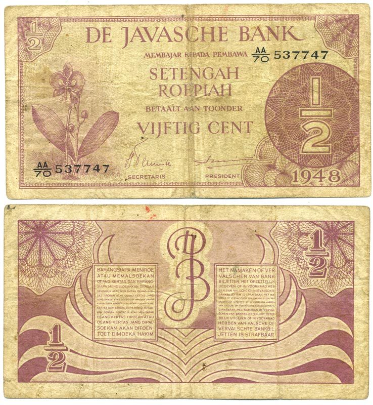 -----Нидерландская Индия 1/2 гульдена 1948 лунная орхидея Pick 97 a бумага 7548-88-1