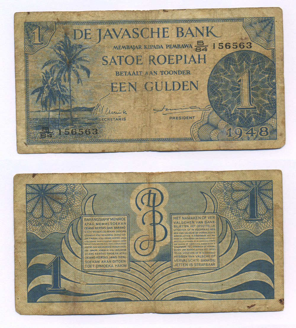 Нидерландская Индия 1 гульден 1948 пальмы Pick 98 a бумага 6278-42-3-1