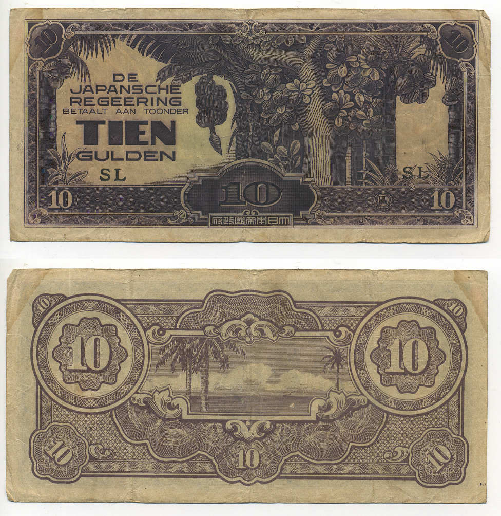 -----Нидерландская Индия, Японская оккупация 10 гульденов ND (1942) серия SI Pick 125 c бумага 7183-10-1-1