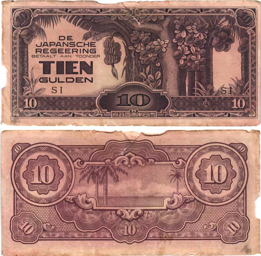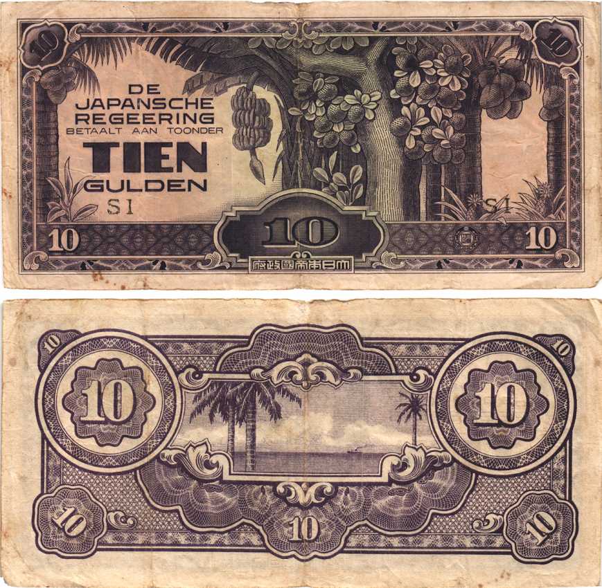 -----Нидерландская Индия, Японская оккупация 10 гульденов ND (1942) серия SI Pick 125 c бумага 7215-10-2-1