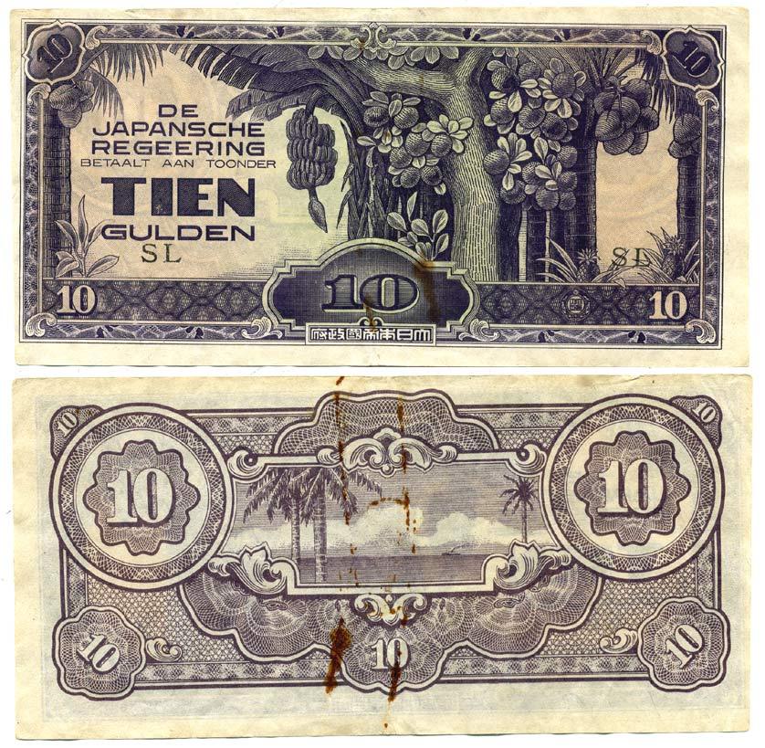 Нидерландская Индия, Японская оккупация 10 гульденов ND (1942) серия SL KM 125 c бумага 3295-110-2