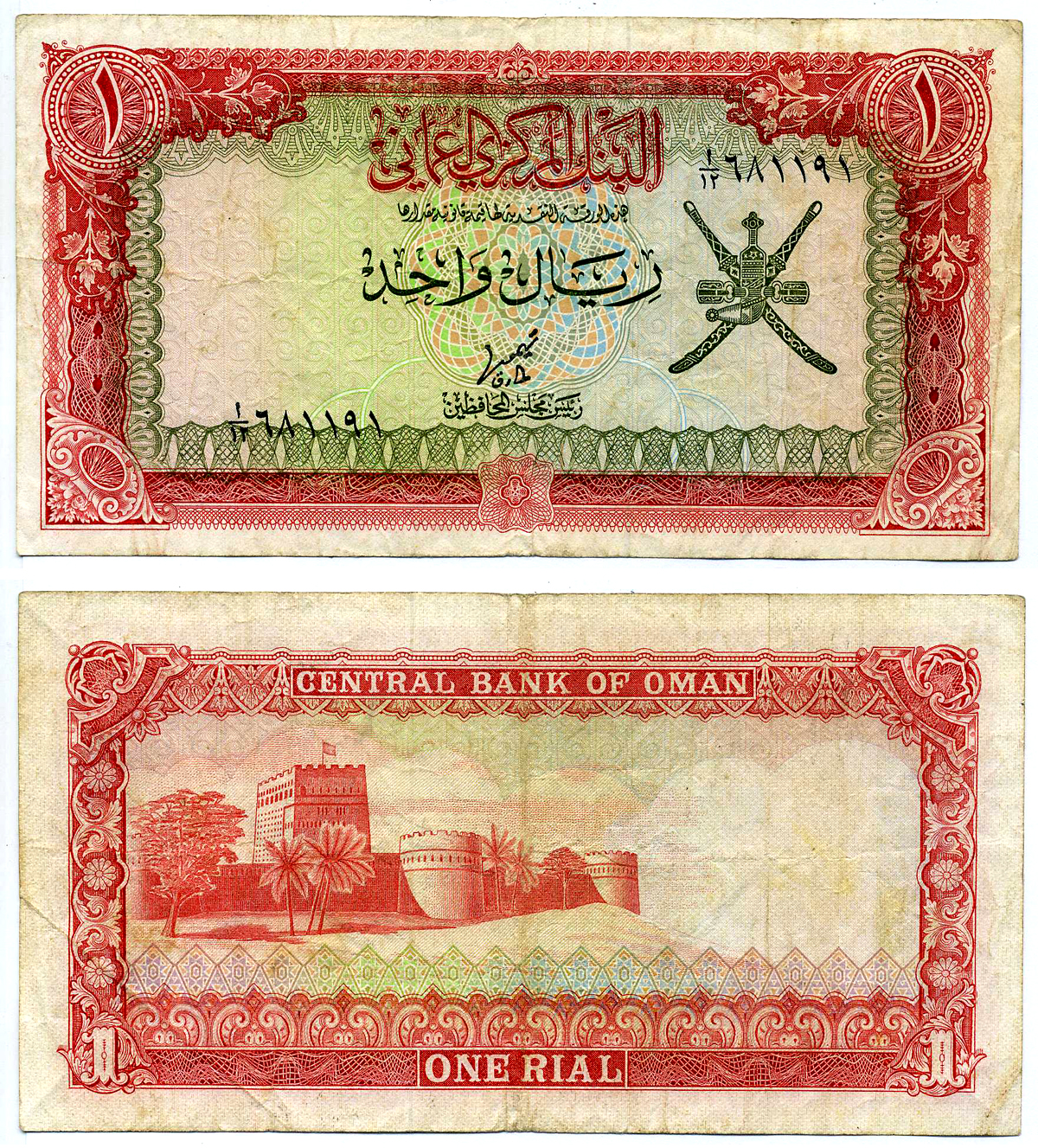 Оман 1 риал 1977 форт Рустак Pick 17а бумага 2119-20-2-2