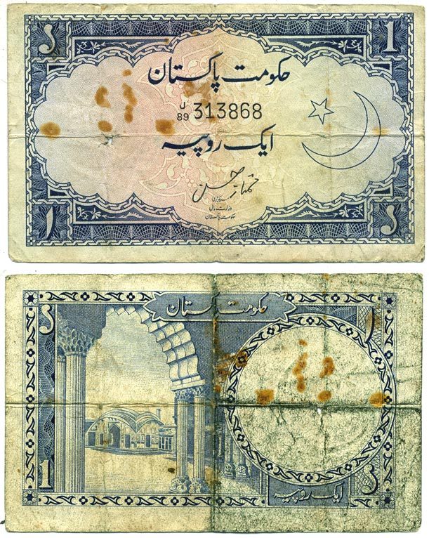 ПАКИСТАН 1 РУПИЯ 1953-1963 ГОЛУБАЯ, ОБОРОТНАЯ ГОЛУБАЯ Pick 9 бумага 7547-68-3-1