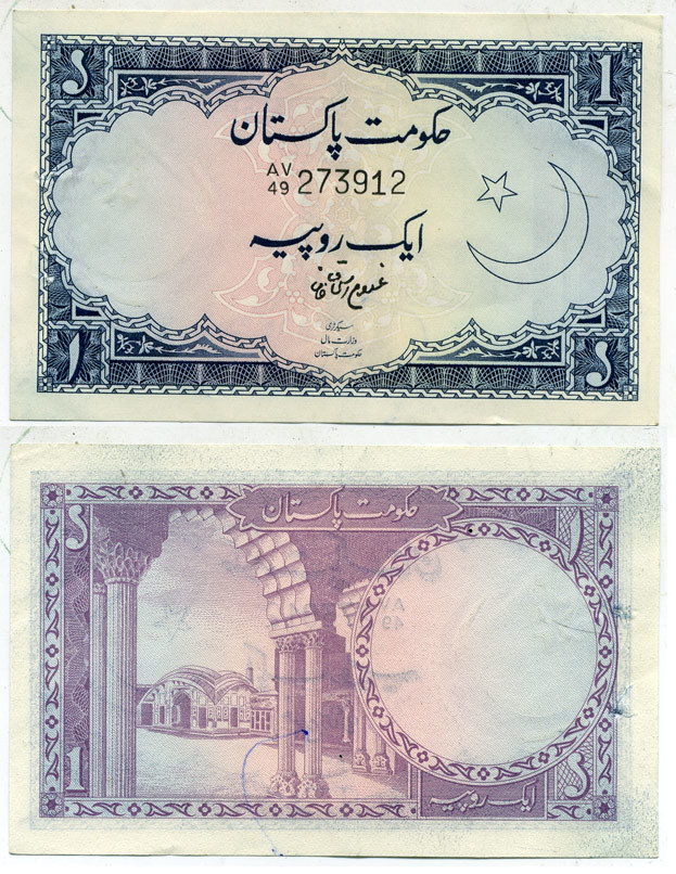 ПАКИСТАН 1 РУПИЯ 1974 ПОДПИСЬ 7 Pick 24А бумага 7552-34-2