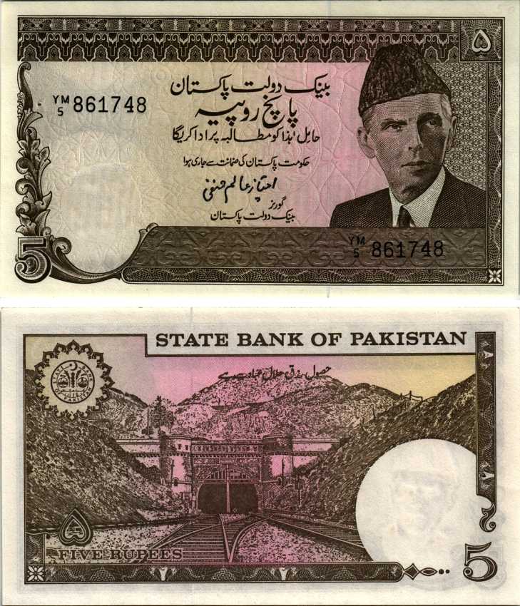 ПАКИСТАН 5 РУПИЙ 1983-1984 ЛИНИЯ ТЕКСТА В, МУХХАМАД АЛИ ДЖИННА, ХОДЖАКСКИЙ ЖЕЛЕЗНОДОРОЖНЫЙ ТОННЕЛЬ, СТЕПЛЕР Pick 38 бумага UNC (ПРЕСС) 6352-48-3-1