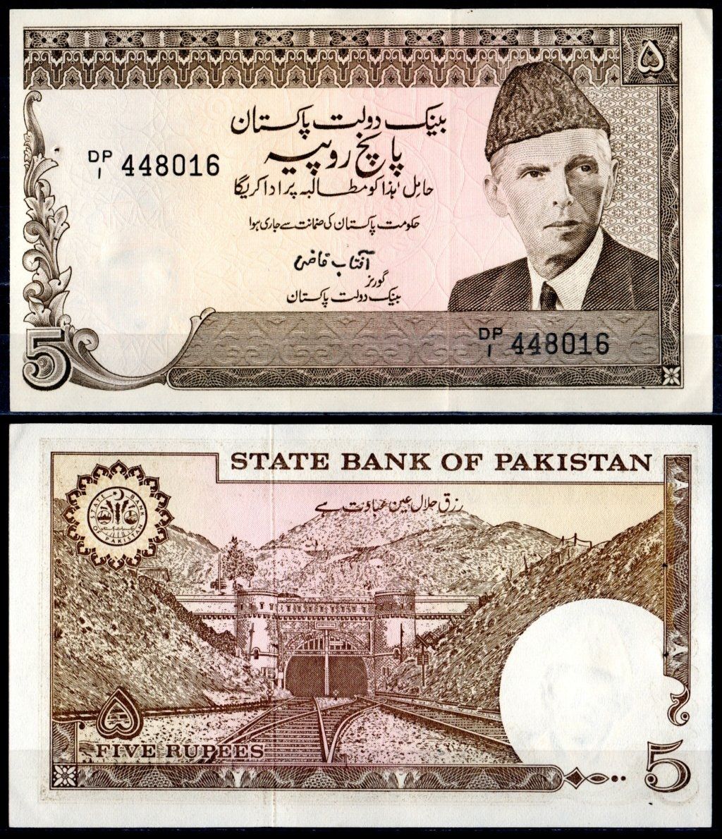 Пакистан 5 рупий ND (1976-1982) отверстия от степлера Pick 28 (2-2) бумага UNC (пресс) 7202-12-2