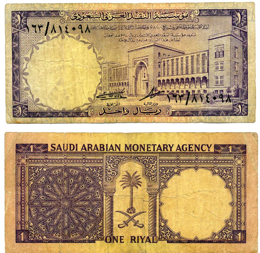 -----Саудовская Аравия 1 риал 1968 AH 1379, здание правительства Pick 11 b бумага 2197-34-2-1