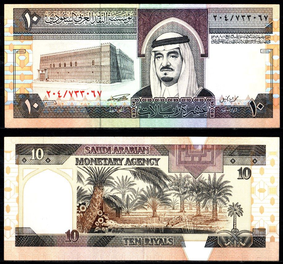 -----Саудовская Аравия 10 риалов 1379 (1961-1983) Pick 23 c бумага 7221-47-3-2