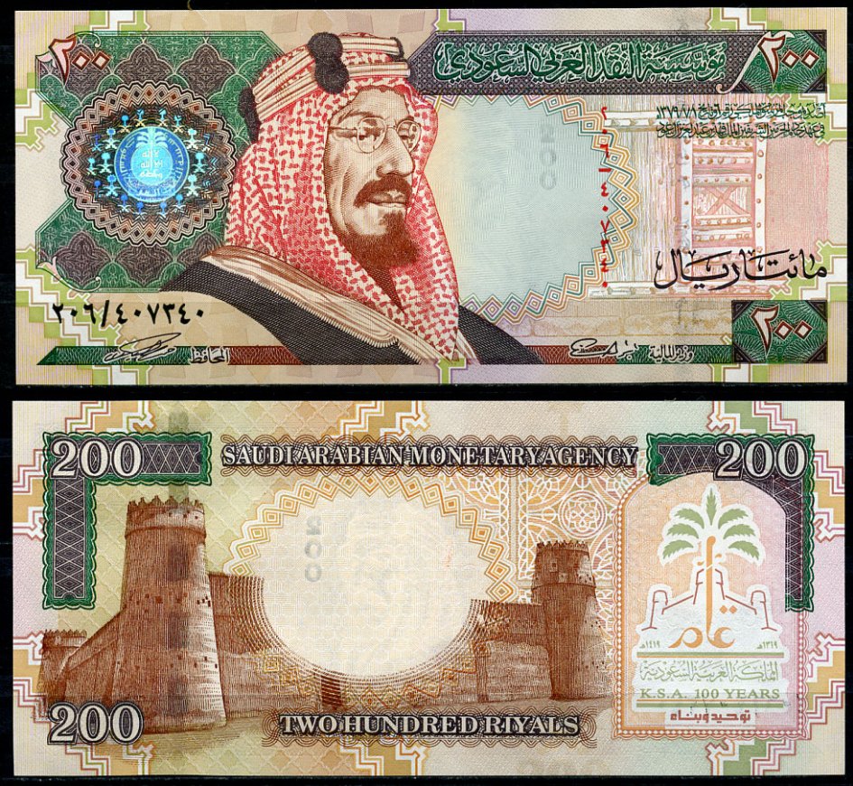 Саудовская Аравия 200 риалов 1999 200 лет Королевства, король Абдул-Азиз ибн Абдуррахман Аль Сауд Pick 28 бумага UNC (пресс) 451-543-3