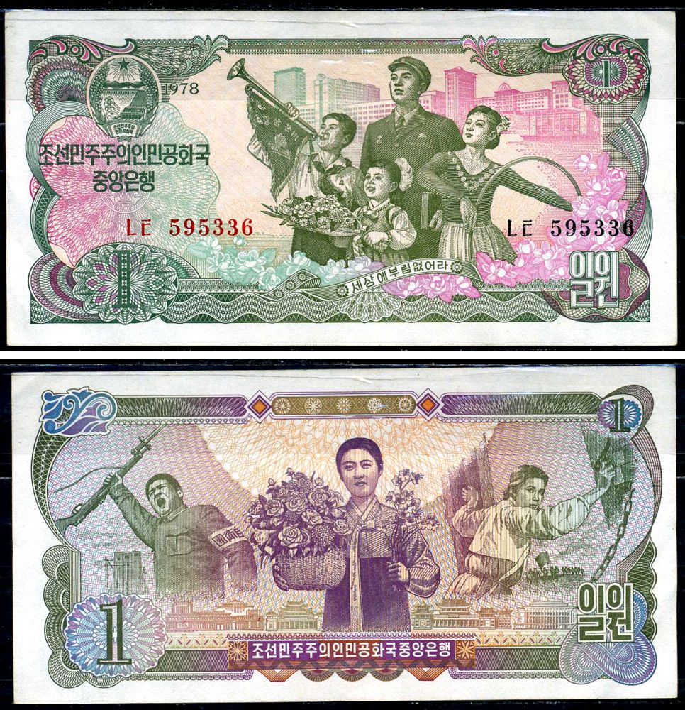 Северная Корея 1 вона 1978 серия без печати, изображение оперы "Море крови" Pick 18a бумага aUNC 446-12-2-3