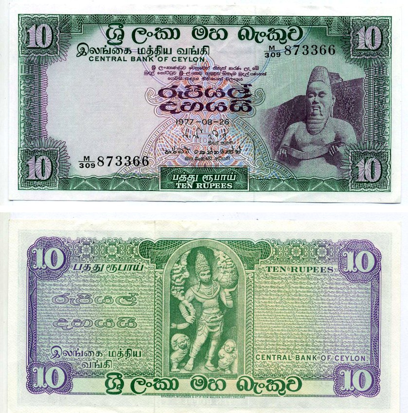 Цейлон 10 рупий 1977 26 августа 1977, БАНК ЦейлонА Pick 74Аc бумага XF 7548-22-1-2