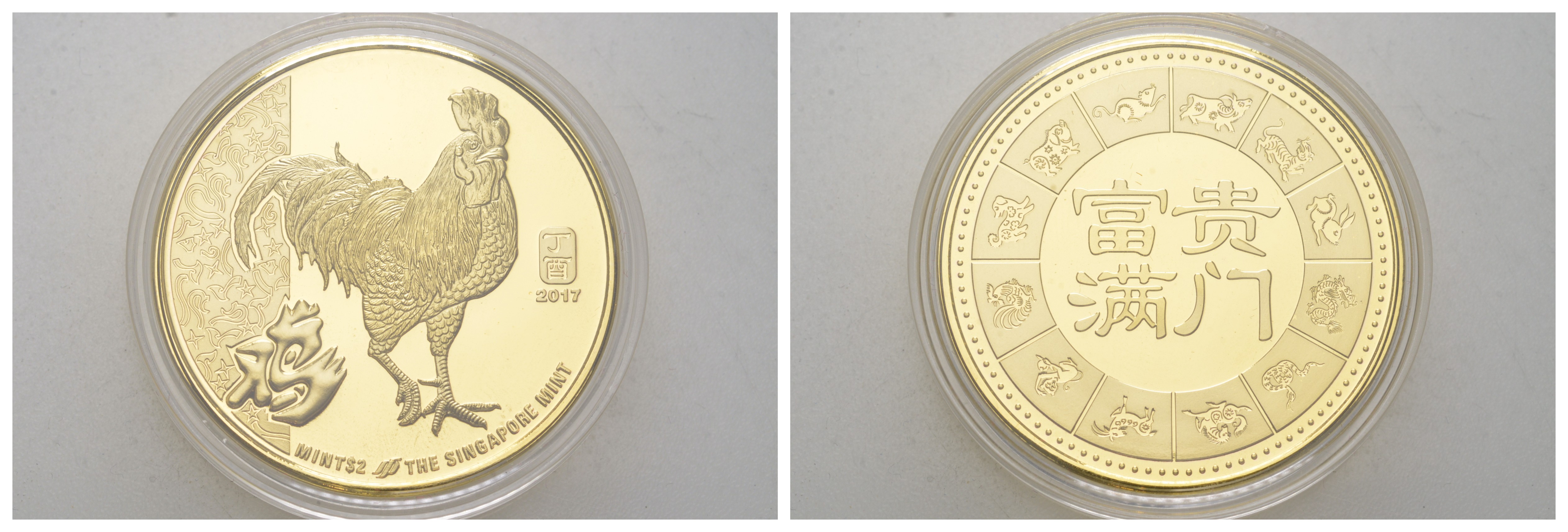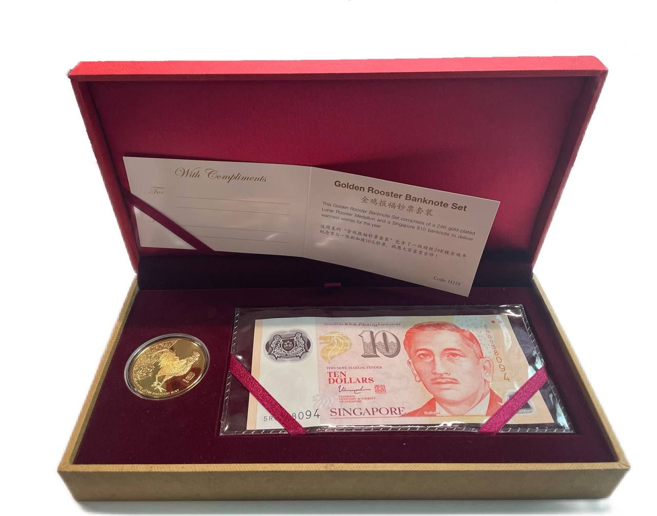 Сингапур набор банкноты (10 долларов) с золотым петухом 2017 (2018) В красочной упаковке с сертификатом. Этот набор банкнот с золотым петухом состоит из позолоченного 24-каратного лунного медальона с петухом и сингапурской 10-долларовой банкноты для передачи самых теплых пожеланий на год Pick 48 l 2-4-2-03