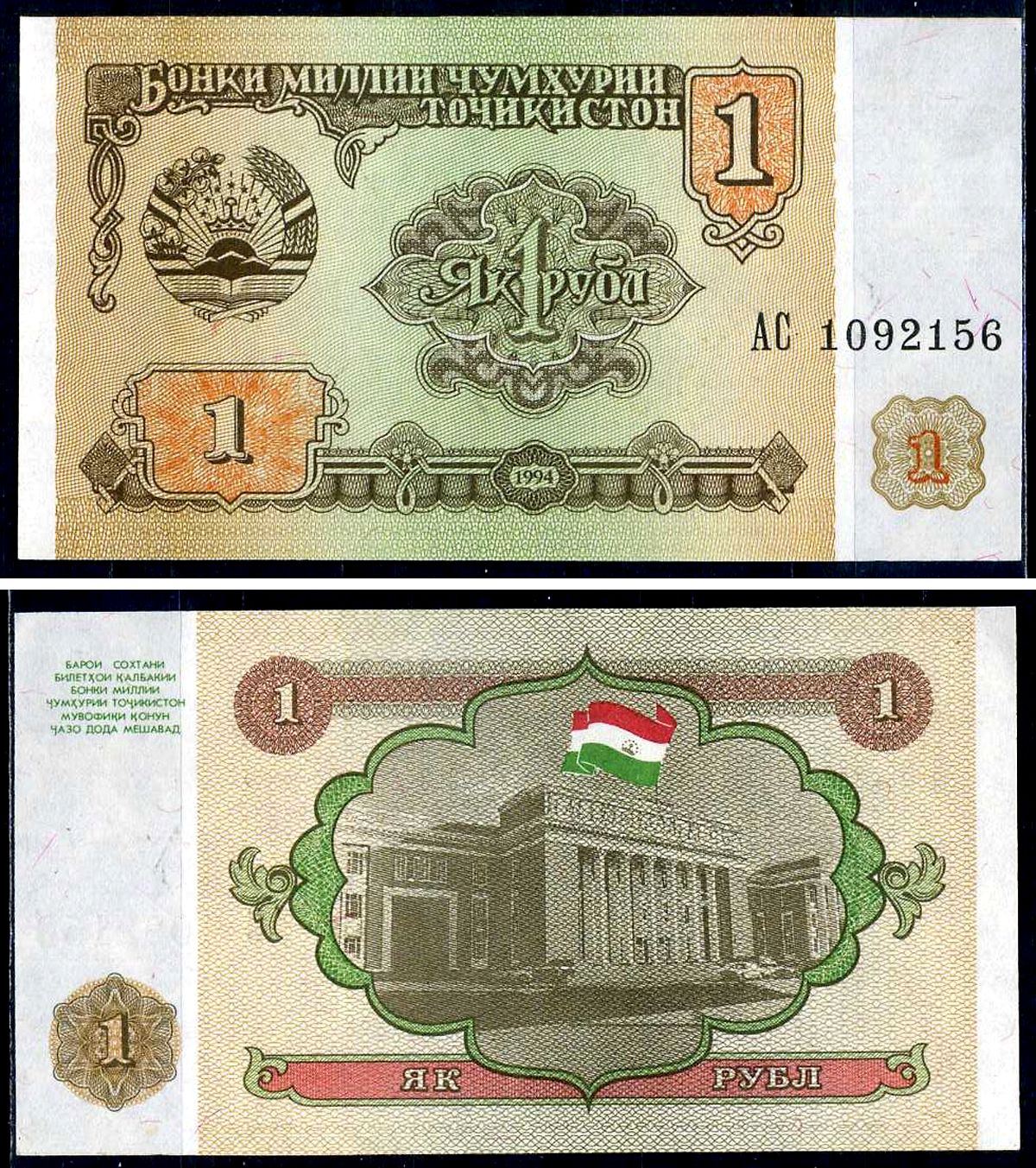 Таджикистан 1 рубль 1994 серия АС 1092156 Pick 1, Сергеев 1 бумага UNC (пресс) 6278-5-1-1