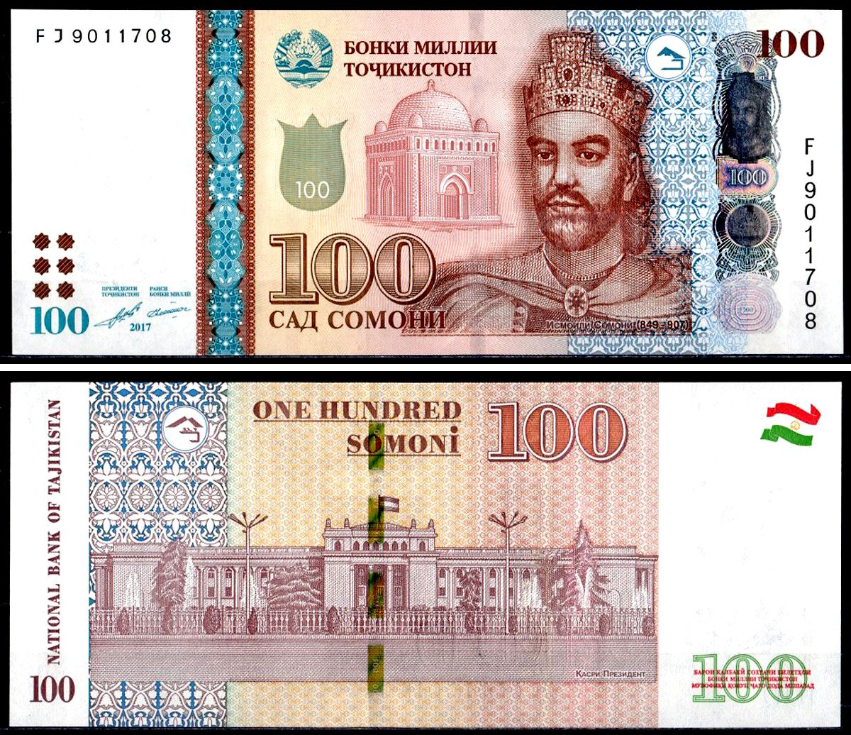 Таджикистан 100 сомони 2017 Исмаил Самани, Президентский дворец, Душанбе Pick 27 b бумага UNC (пресс) 7548-61-2-2