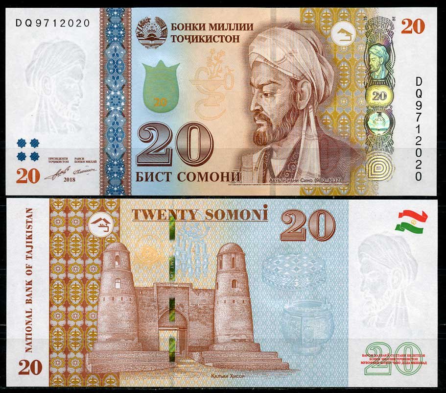 Таджикистан 20 сомони 2018 Абу Али Хусейн ибн Абдаллах ибн Сина (Авиценна) Pick 25 c бумага UNC (пресс) 446-99-2