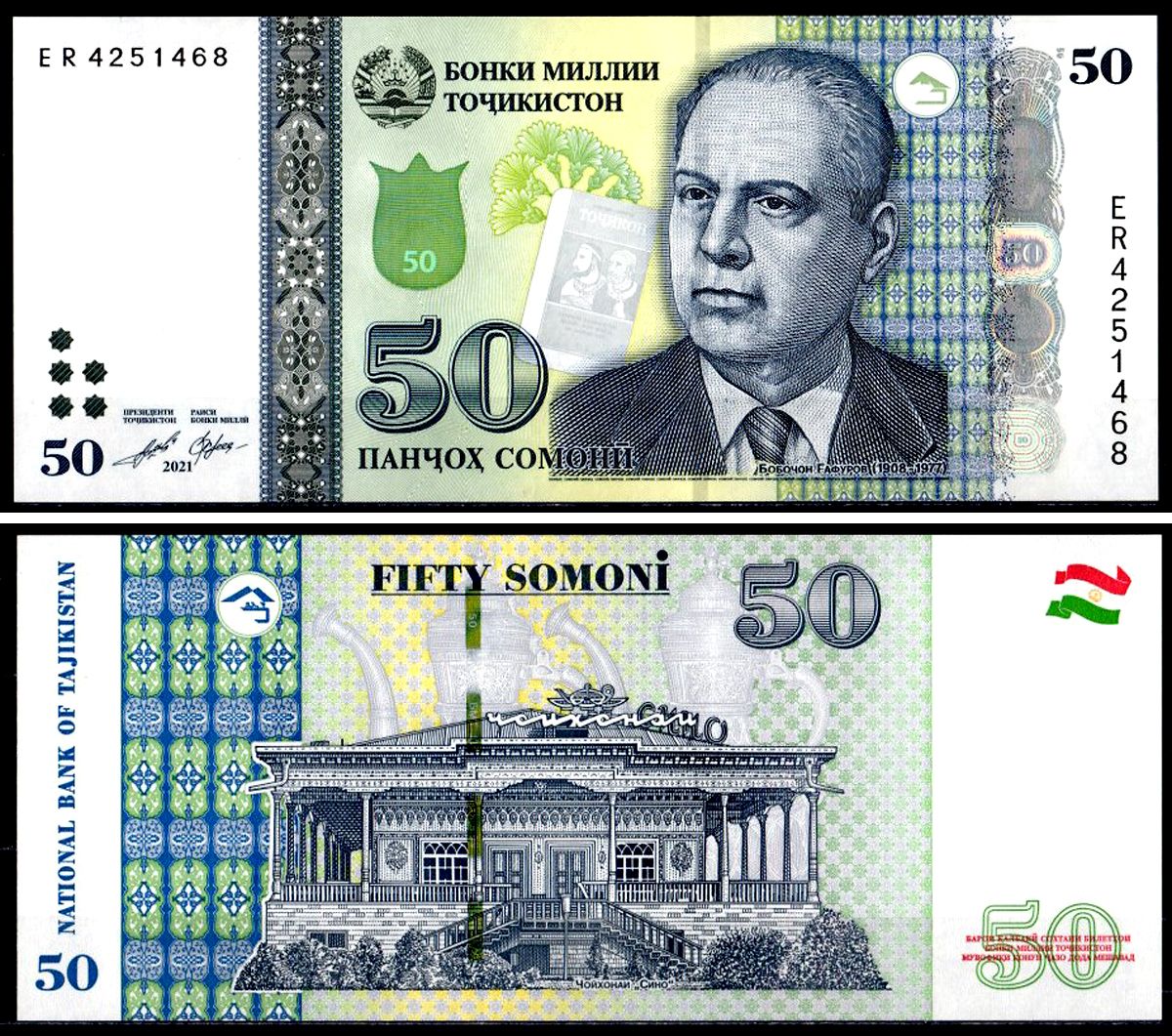 Таджикистан 50 сомони 2021 Бободжон Гафуров, Чайхана «Чойхонаи Сибне», Душанбе Pick 26 пластик UNC (пресс) 7548-61-1-2