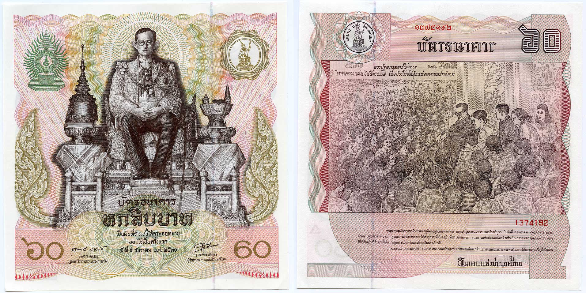 -Таиланд 60 батов BE 2530 (1987) 60 лет со дня рождения короля Рама IX Пхумипон, квадратная банкнота Pick 93 a бумага UNC (пресс) 450-64-1Мальдивские островаМалайяТибетЯпонияШри-Ланка (Цейлон)Французский ИндокитайФилиппиныУзбекистанТурцияТайваньСирияСингапурСеверная КореяПакистанНепалМонголияСтрейтс-СетлментсМалайя и Британское БорнеоНидерландская ИндияБахрейнОманСаудовская АравияТаджикистанКатарОАЭЮжная КореяТуркменистанТиморКувейтИорданияКореяВьетнамАзербайджанАрменияАфганистанБангладешБирма - МьянмаБрунейБутанМалайзияКамбоджаМакаоЛиванЛаосКитайКиргизстанГонконгКазахстанЙеменИранИракИндонезияИндияИзраиль