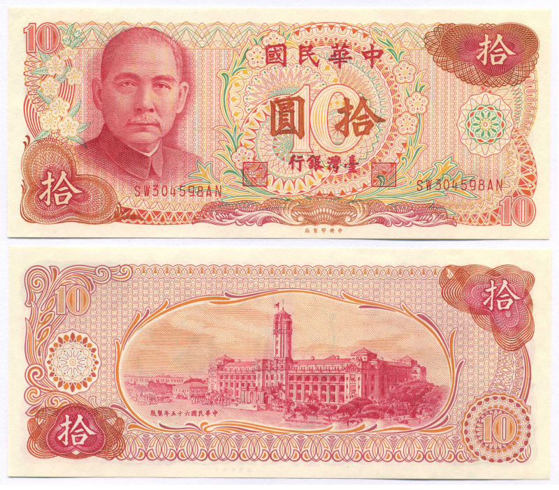 ТАЙВАНЬ 10 ЮАНЕЙ 1976 Pick 1984 бумага UNC (ПРЕСС) 7148-39-1-2