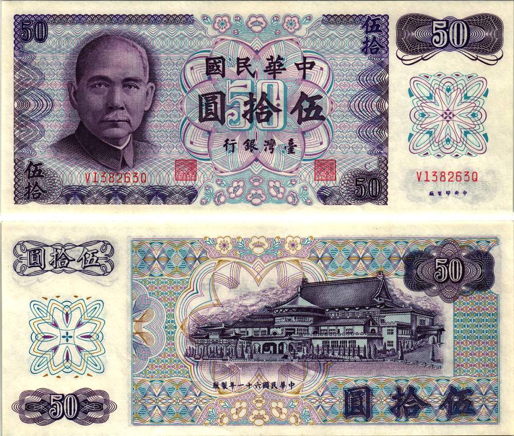 Тайвань 50 юаней 1972 Сунь Ятсен, здание в Чунг-Шане Pick 1982 бумага UNC (пресс) 8615-40-1-2