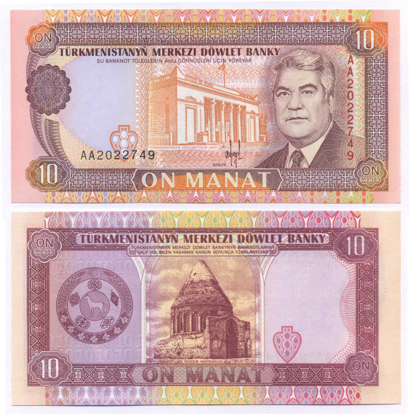 Туркменистан 10 манатов 1993 ПРЕЗИДЕНТ НИЯЗОВ Pick 3, Сергеев 3 бумага UNC (пресс) 7148-19-3-2