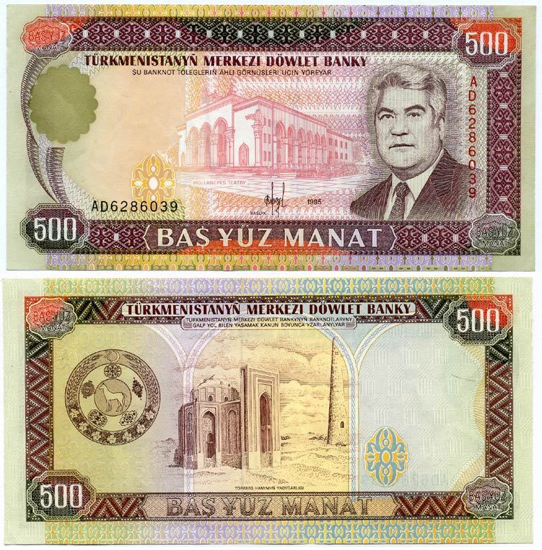 Туркменистан 500 манатов 1995 президент Ниязов Pick 7b бумага аUNC 7486-26-2-1