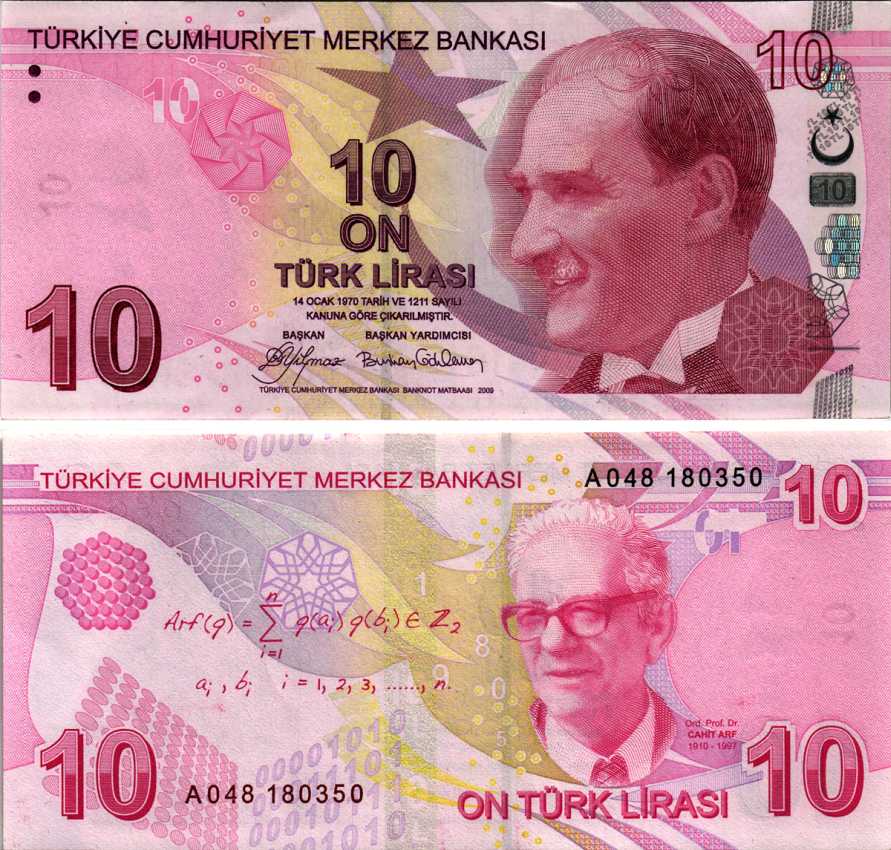 ТУРЦИЯ 10 ЛИР 2009 КЕМАЛЬ АТАТЮРК, МАТЕМАТИК КАШИТ АРФ Pick 223 бумага UNC (ПРЕСС) 6352-40-3-2