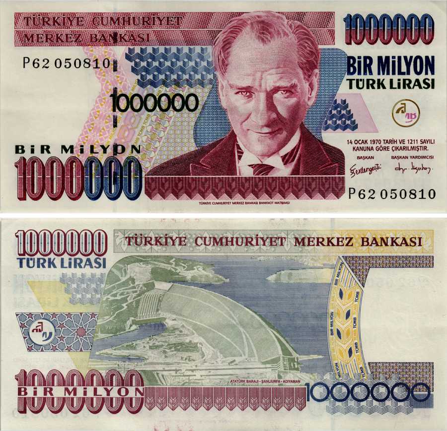 ТУРЦИЯ 1000000 ЛИР 2002 ПРЕЗИДЕНТ КЕМАЛЬ АТАТЮРК Pick 213 бумага аUNC 6281-19-2-2