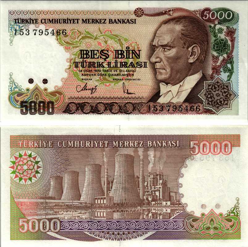 Турция 5000 лир 1990 ПРЕЗИДЕНТ КЕМАЛЬ АТАТЮРК, ТЭЦ Pick 198 бумага UNC (пресс) 8605-18-1-2