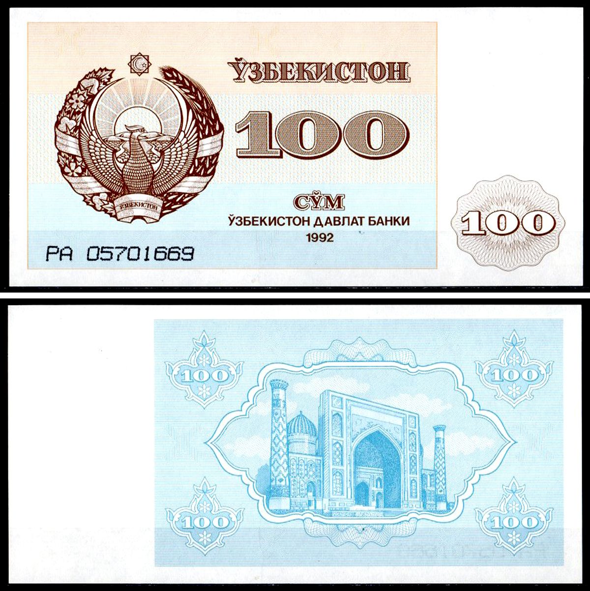 -----Узбекистан 100 сум 1992 Медресе Улугбека на площади Регистан, Самарканд Pick 67 бумага UNC (пресс) 7548-66-1-2