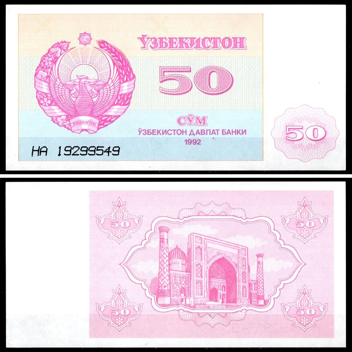 -----Узбекистан 50 сум 1992 Медресе Улугбека на площади Регистан, Самарканд Pick 66 бумага UNC (пресс) 7548-66-1-1