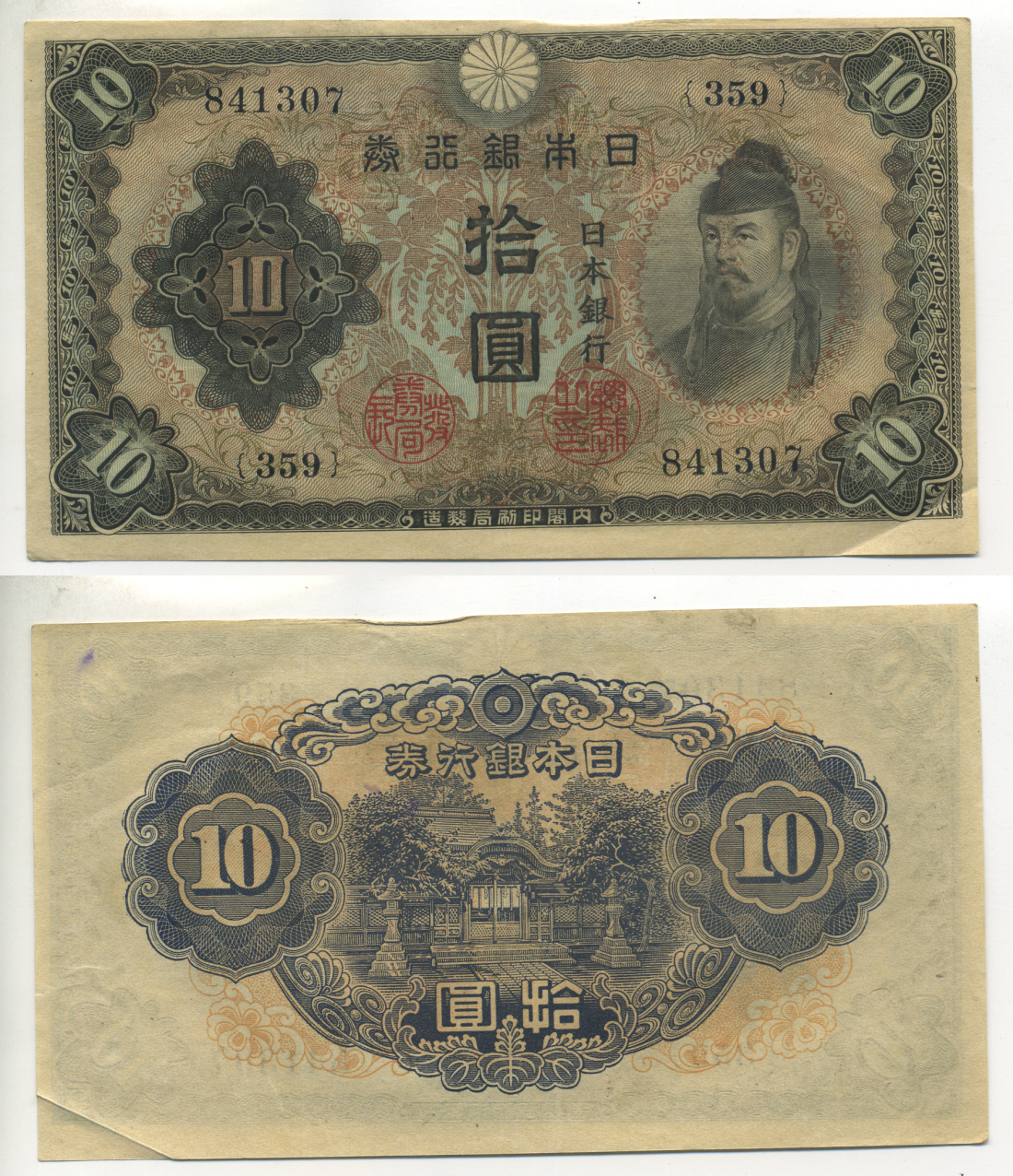 ЯПОНИЯ 10 ЙЕН 1943 - 44 БЛОК 359 Pick 51 бумага 6283-38-1-2