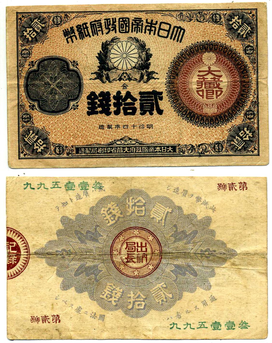 Япония 20 сен 1882 год 14 Pick 15 бумага 451-447-1
