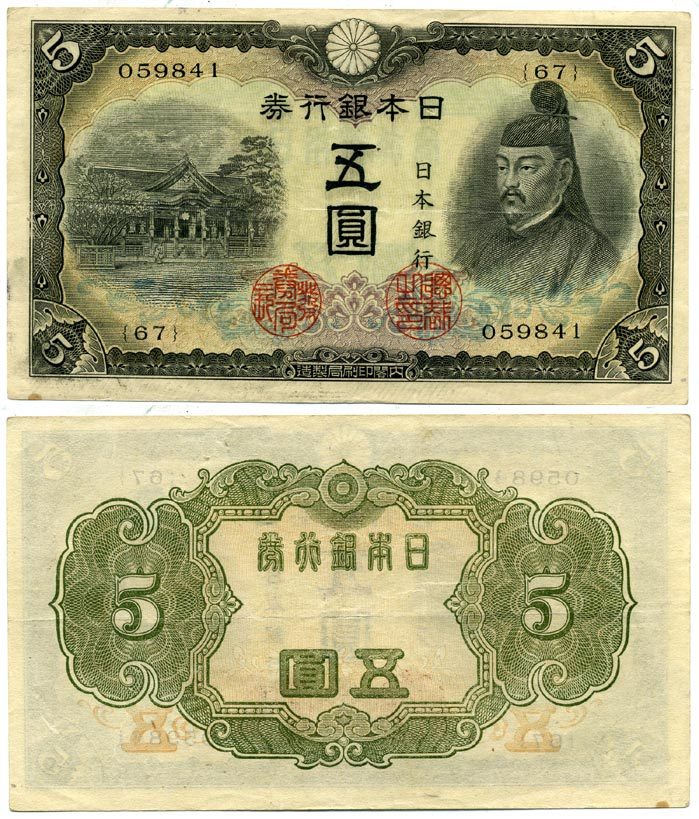 ЯПОНИЯ 5 ЙЕН 1944 Pick 55а бумага 6289-41-1-2