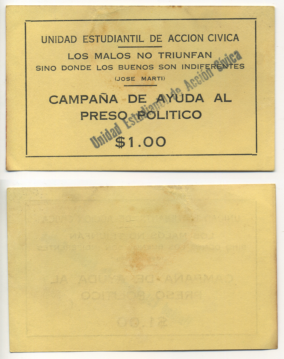 Куба благотворительный билет ND на 1 песо, в помощь политическим заключенным бумага аUNC 7487-23-2-1