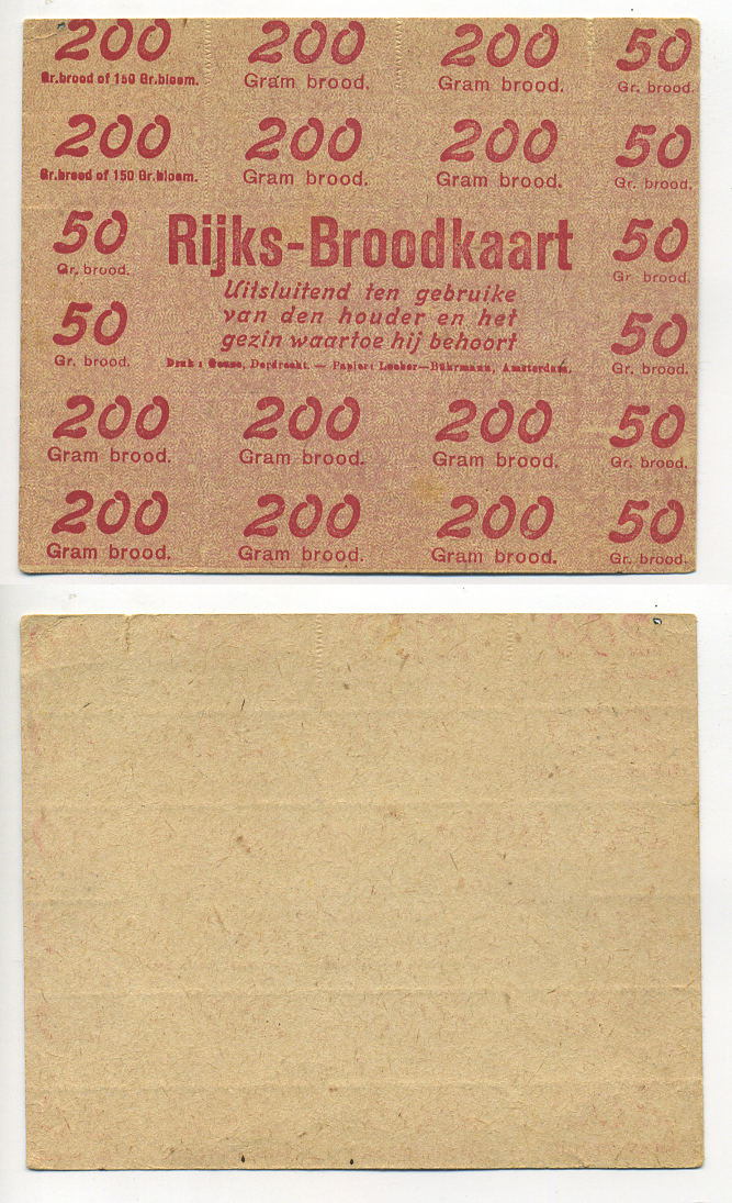 Нидерланды хлебные карточки 1944-1948 красная печать бумага 6317-33-1-2