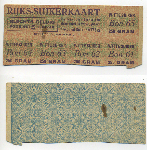 Нидерланды талоны на сахар 1944-1950 бумага 6317-34-1-1