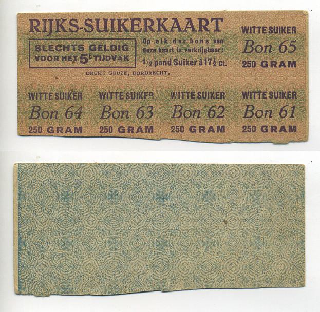 Нидерланды талоны на сахар 1944-1950 бумага 6317-34-1-2