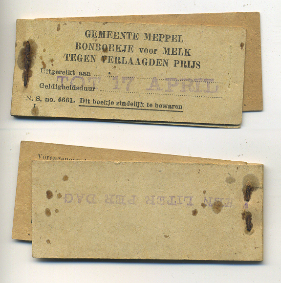 НИДЕРЛАНДЫ ПРОДОВОЛЬСТВЕННЫЕ КАРТОЧКИ НА МОЛОКО, ОТРЫВНЫЕ бумага 6317-37-3-2